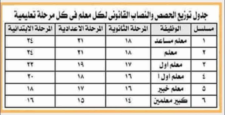 نصاب حصص المعلمين للمرحلة الابتدائية