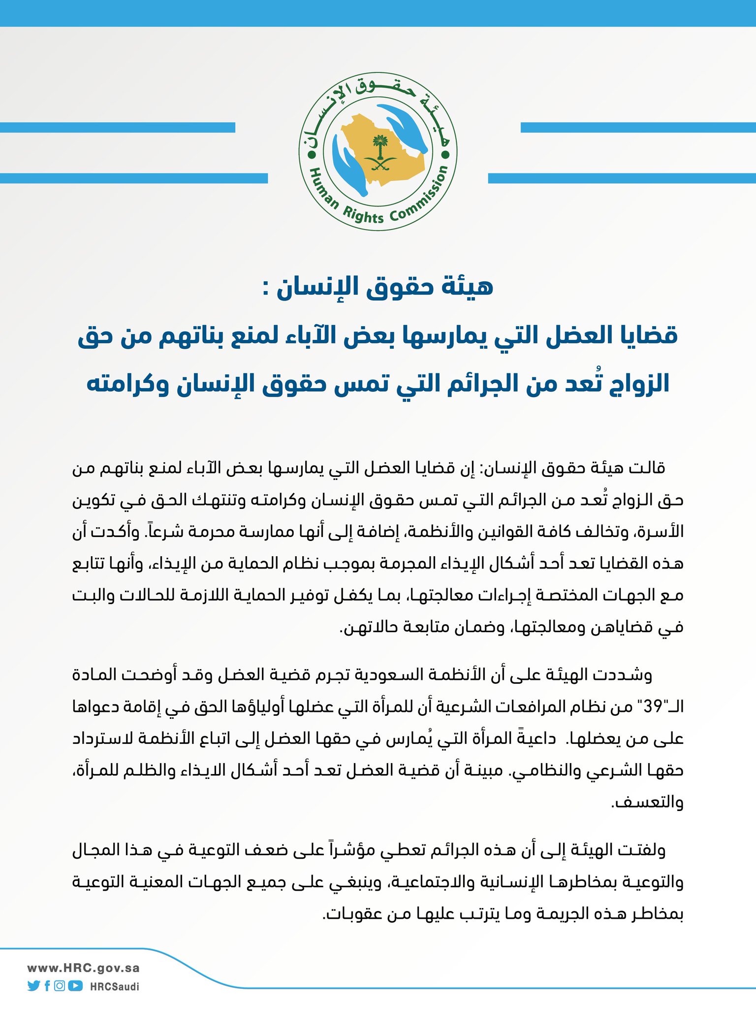 نظام هيئة حقوق الإنسان السعودية. ثم ن رئيس هيئة حقوق الإنسان السعودية عواد العواد الجهود المبذولة من وزارة الموارد البشرية والتنمية الاجتماعية وذلك بعد إطلاق مبادرة تحسين العلاقة. تفاصيل الدخول للخدمة. وبعد الاطلاع على مشروع تنظيم هيئة حقوق الإنسان المشار إليه. نظام مكافحة جرائم الاتجار بالأشخاص المادة الأولى.