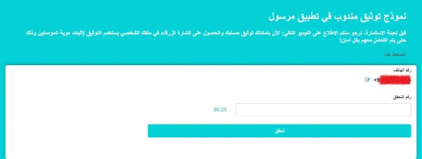نموذج توثيق مندوب في تطبيق مرسول