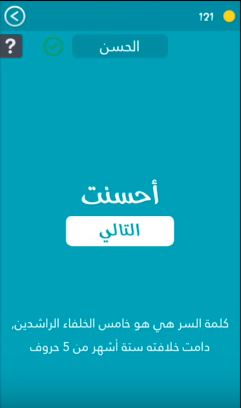 دهشة Daahsha هو خامس الخلفاء الراشدين بعد سيدنا على دامت خلافته ستة أشهر من 5 حروف بلعبة كلمة السر