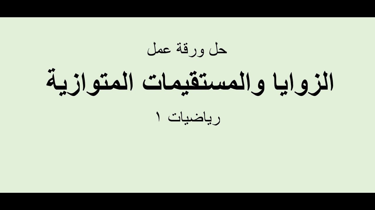 حل ورقة عمل درس الزوايا والمستقيمات المتوازية رياضيات 1 Youtube