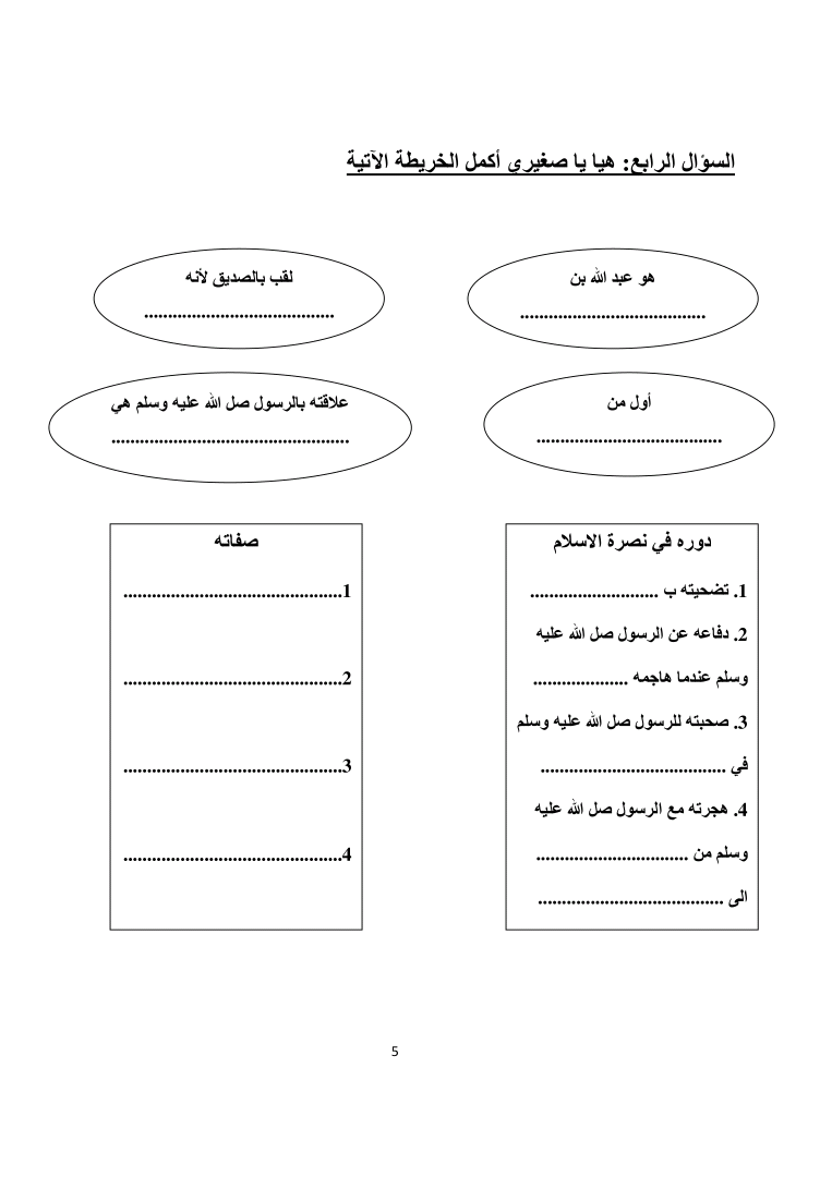 ورقة عمل معلومات عن ابو بكر الصديق