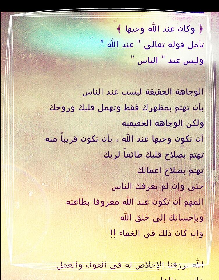 جنى On Twitter حياتك سعيده ام حزينه وكان عند الله وجيها المهم من انت عند الله فكم من شخص خفي نقي تقي عند الله له شأن كبير وعظيم Https T Co Vtohvhtont