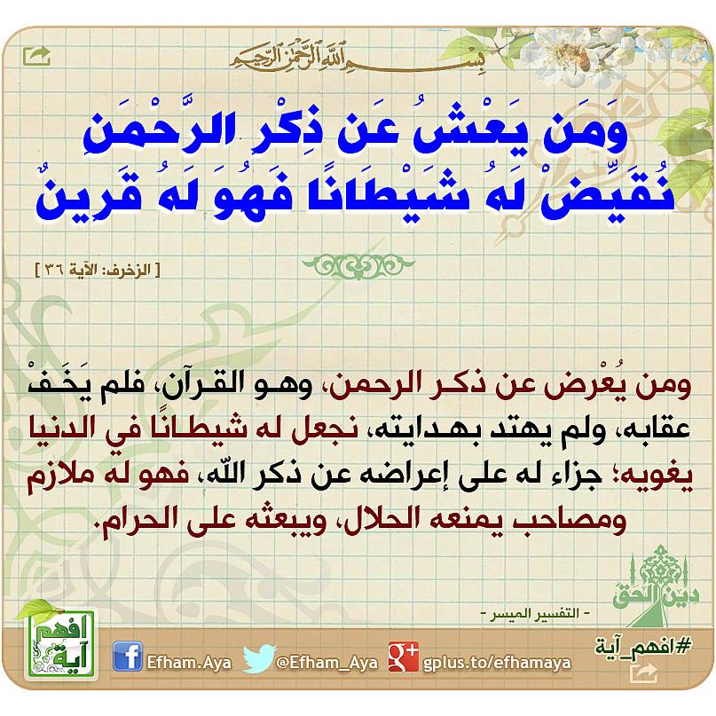 آيات القرآن On Twitter و م ن ي ع ش ع ن ذ ك ر الر ح م ن ن ق ي ض ل ه ش ي ط ان ا ف ه و ل ه ق ر ين القرآن آيات سورة الزخرف