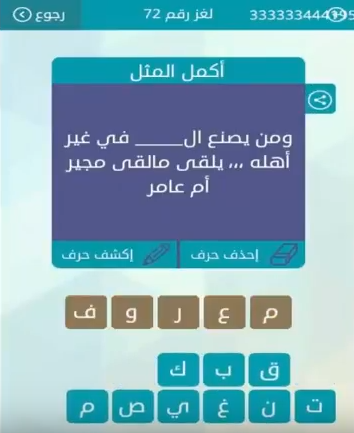 حل لغز ومن يصنع ال فى غير اهله يلقى ما لقى مجير ام عامر من لعبة وصلة المجموعة الثامنة لغز ر صقور الإبدآع